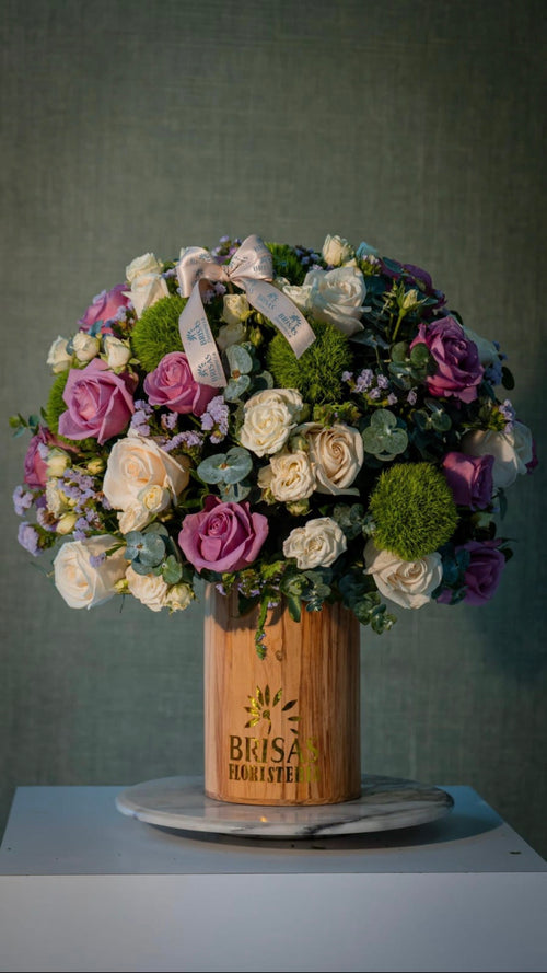 La armonía perfecta entre naturaleza y diseño. Nuestros arreglos en base están cuidadosamente diseñados en recipientes de cerámica, vidrio o madera texturizada, creando piezas centrales listas para embellecer cualquier espacio desde el momento en que llegan.